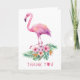 Send a sweet thank you with this tropical flamingo baby shower card! Featuring a watercolor pink flamingo standing on vibrant florals and greenery, this card is perfect for expressing gratitude after a summer, luau, or tropical-themed celebration. Personalize the inside with your custom message. Coordinates with the full Flamingo Baby Shower Collection.