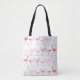 All six species of flamingo strutting their stuff on a just-the-right-amount-of-tacky tote bag! They're all here: American, Andean, Chilean, James's, Greater and Lesser.