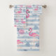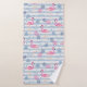 Add a touch of tropical charm to your bathroom or beach day with this vibrant towel featuring a playful pattern of pink flamingos, vibrant pineapples, and lush tropical leaves set against a soothing light blue and white striped background. Perfect for adding a splash of fun and color to your everyday routine, this whimsical towel combines softness and style, making it an ideal accessory for any occasion.