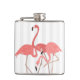 A trio of pink flamingos for summer and throughout the year for tropical appeal. Shown here over a pale gray striped background.