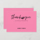 Let your guests know you appreciate them celebrating your birthday party with you by sending them these thank you cards featuring "thank you" typography in modern handwriting script with a silhouette of a flamingo holding a cocktail on a pretty pink background. Art by KL Stock.