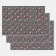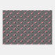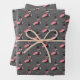 Fun flamingo wrapping paper sheets with a pattern of pink flamingos in tuxedos and top hats on a gray background.