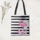 Flamingo Vibes Only Black & White Stripes Flamingo Tote Bag