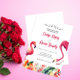 Yes, you can print on the back of your invitation for free! Most designs already have a corresponding design on the back that can be personalized using the Design Tool and going to Layers. This is a great way to communicate more information or further personalize your Flamingo Wedding Invitation. The option is really up to you.