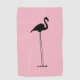 This silly golf towel design features a black colored silhouette/shadow of a flamingo with unreasonably long legs, on a pink colored background.