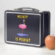 This is a standard metal lunchbox that appears to work just fine. We designed this box ourselves with an uploaded photo and custom text on the front and back. It looks absolutely beautiful except the front of the lunchbox is not centered like it shows in the photo. The print borders don't align with the inset flat part of the box where the preview photo online showed it perfectly centered in there. The back looks nice and centered though.