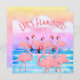 Flamingoes on Parade Flat Greeting Card. A funny party invitation to your favorite flamingo lover. Tropical Nature, beach, birds, animal-inspired. Watercolor artsy entertaining Birthdays Parties or other events. Keep the humorous quote "Let's Flamingle!", change it and add your party event details to the inside.