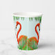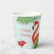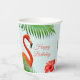 Beautiful flamingos, hibiscus and palm leaves on light blue Birthday Party Cup. Text can be personalized for any occasion.