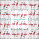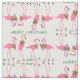 Sewing fabric with pink flamingos pattern and "merry Christmas" text. Tropical Christmas pattern for holidays spent in the tropics.