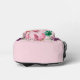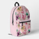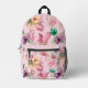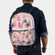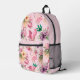 A beautiful illustration of a flamingo in flight, surrounded by exotic leaves and flowers against a pink background, in a fairytale style.