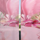 Check out this beautiful illustration of a flamingo in flight, surrounded by exotic leaves and flowers against a pink background, in a magical fairytale style.