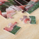 Game puzzle shown with a photo print of beautiful pink flamingo birds. Customize this item or buy as is. Stock Image