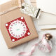 Square Christmas gift label sticker with a beach theme of flamingoes and sand dollars on dark red.