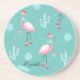 Flamingos Santa Hat Presents Snowflakes Coaster