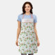 This exotic summertime apron watercolor design has pink flamingos and a variety of tropical flowers, with a delicate background of tropical leave
