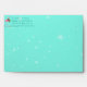 Tropical Christmas envelopes decorated with pink flamingos. Pretty turquoise colored felt paper has twinkling stars background. Add a return address on the front using the text template. Inside, under the flap four big flamingos stand with holiday wreaths around their necks.