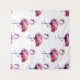 Flamingos and splashes create an artistic watercolor pattern on a white background.