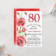 Flanders Poppy Watercolor 80th Birthday Party Invitation