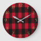 Flannel Buffalo Plaid Red lumberjack texture 1 Large Clock