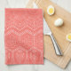 Coral colored kitchen towel with a design inspired by the beautiful beading and sequins of 1920s flapper dresses.