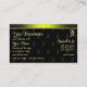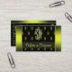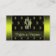 Make a lasting impression with this elegant business card design featuring shimmery black and yellow gradient borders and monogram pattern on a black background.