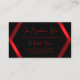 Make a lasting impression with this eye catching and modern business card design featuring chic black geometric graphics with a shimmery red background.