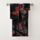 Flashy red blots on dark gray rocky base, texture bath towel set