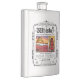 The product is a good size and came exactly as it was pictured. The lid is not attached to the flask, which could be dangerous on drunken nights... The print came out surprisingly well and looks very sharp. Would definitely recommend.