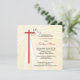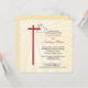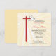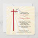 Beautiful invitation card for a girl's Confirmation. Golden rays are shining behind a cross in red and a white dove. The red is the color of Confirmation and the dove symbolizes the Holy Spirit. Personalize the text to make it perfect for your needs for her Confirmation. The corners of this square card are rounded adding a cohesive element with the rounded edges of the cross.