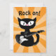 Rock on! Rocker Black Cartoon Cat with Guitar flat card. Artwork by Aaron Gibbs.