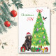 Flat Coated Retriever Dog, Bird and Christmas Tree Holiday Card