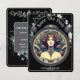 Save The Date Wedding Card With Floral Design In Black. Front Depicts A Mucha Style Woman Design . Back Contains The Personalised Details Of The Planned Upcoming Wedding.