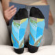 These unique socks present a stylized flat earth map, which is displayed in vivid colors. The striking design shows different continents and oceans, perfect for geography enthusiasts and adventurers alike.