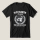 This T-shirt showcases a striking design with a black background, featuring the bold text "FLAT EARTH Society" at the top in a rugged, white font. The centerpiece is a stylized version of the United Nations emblem, with a blue map-like design encircled by white olive branches, symbolizing a provocative twist on global unity. Below, the phrase "THE EARTH IS FLAT QUESTION EVERYTHING" stands out in large, distressed white letters, promoting a rebellious and thought-provoking message. The contrast and texture give it a bold, edgy look perfect for making a statement.