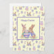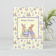 Flat Easter Card with sweet watercolor bunnies and their easter egg. Along with easter basket and flowers.