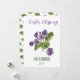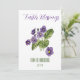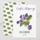 Purple violets from original watercolor floral botanical. Easter Blessings saying. Name place and date. Back of card purple. Traditional style with vibrant colors.