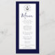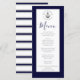 Menu Nautical-Themed Floral Anchor White and Navy Blue Striped Background Wedding