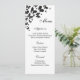 This Menu Card template is shown on the basic white paper with a black butterflies print. Script and standard text in Black.