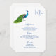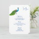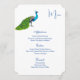 This Menu Card template is shown on the basic paper with a lovely peacock print. Script and standard text in Blue.