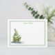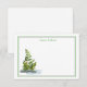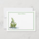 This custom name flat note card is shown with a floral print and has a double border in colors of green and grey.