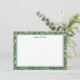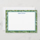 This custom name flat note card is shown with a pretty peacock feathers print and has a double border in colors of blue and green.