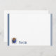 Flat note card is shown in white with a slim navy blue double border trim and has the horoscope sign Cancer.