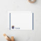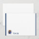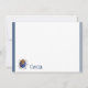 Flat note card is shown in white with a slim navy blue double border trim and has the horoscope sign Cancer.