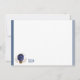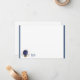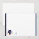 Flat note card is shown in white with a slim navy blue double border trim and has the horoscope sign Leo.
