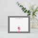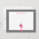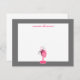 A flat notecard featuring an illustration of a pink hat stand wearing a pink, gray, and black fascinator at bottom. Personalize with your name in pink script at top. Border is gray.