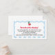Add a thoughtful touch to your baby shower invitations with this charming "Books for Baby" enclosure card! Featuring a sweet cherry illustration and a playful red and blue design, this insert asks guests to bring a book instead of a card—a keepsake the little one will cherish for years to come. Make your baby shower even more memorable by starting baby's first library—one heartfelt book at a time!