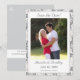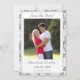This design encompasses the essence of elegance. A champagne-pink background image of delicate lace surrounds a rectangular background to the photo you supply. Heading is displayed in a silver-colored Nuptial font above photo. Names of Bride and Groom are displayed below photo in same Nuptial font. Date of wedding plus city and state are featured below names. Reverse features a silver-colored background. Top corner displays initials of Bride and Groom linked together at top left corner. Room for bridal registry information is featured at bottom against a white strip. Designed to coordinate with the Champagne-Pink Lace Catholic Wedding Suite.