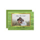 Vietnamese Green and White Photo Save the Date with lavender banner and green heart,