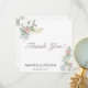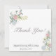 This exquisite wedding thank you card is adorned with an elegant floral motif featuring delicate roses and hydrangeas nestled among lush green leaves.