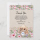 Flat Thank You Baby Shower Card with adorable watercolor roses and cute stuffed bunny.